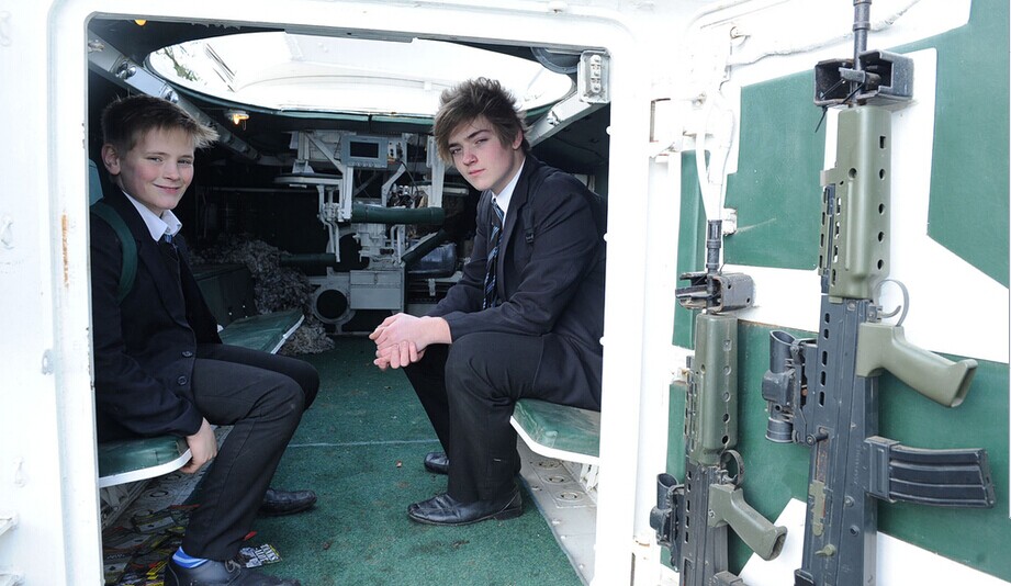 军事迷Nick Mead共拥有总计价值两百万英镑、130余辆可以合法上路的坦克,这意味着他的两个儿子每天可以自己选择一辆坦克,让父亲送他们上学。他们的座驾就算在恶劣的大雪天也丝毫不受影响。